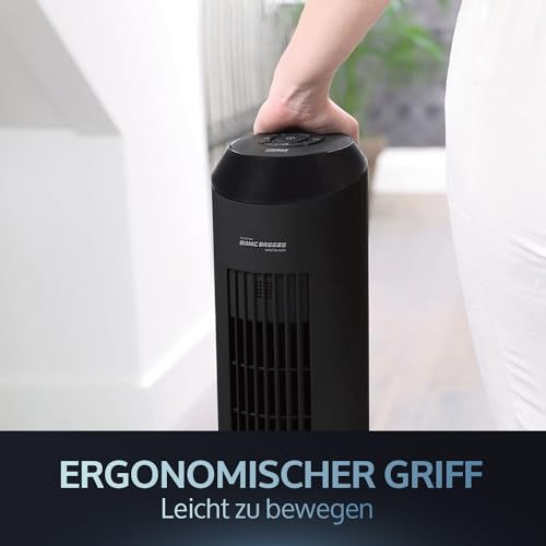 JAP Vancouver Ventilatore a torre ionizzante silenzioso - Telecomando - Oscillazione 65° - Timer - 3 modalità e 3 velocità regolabile - Risparmio energetico - Nero