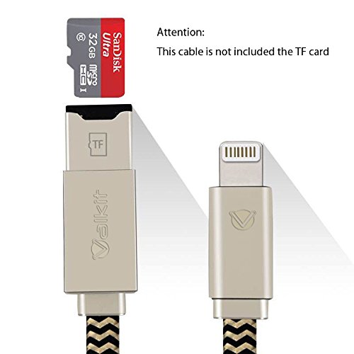 Vanctec Lettore di Schede di Memoria, iPhone Micro SD Card Reader, 2in1 Lightning USB Corda Cavo Adattatore per iPhone iPhone 5/6/7 iPad Mini Air Pro con Lettore di Schede Micro SD di Memoria Esterna (Scheda SD non Inclusa)