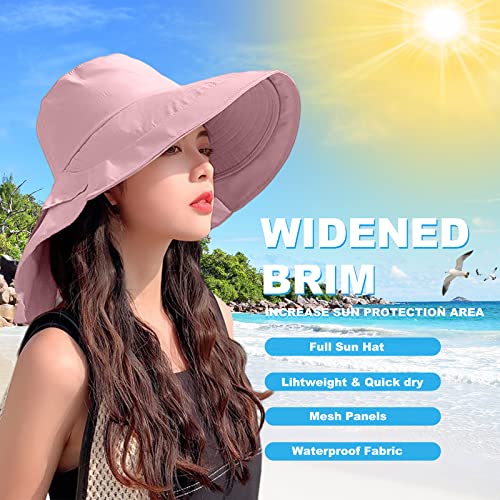 VanderHOME Cappello da Sole a Tesa Larga Estivo da Donna in Cotone, Cappello da Pescatore UPF 50 + Pieghevole con Corda Antivento, Donna Cappelli da Pesca All'aperto Protezione UV, Rosa