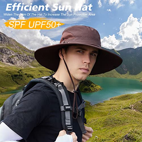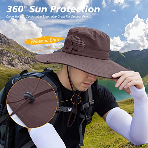 VanderHOME Cappello Uomo da Pescatore Tesa Larga Anti UV Traspirante Cappelli da Escursionismo da Uomo con Sottogola Cappello da Sole Uomo Regolabile Asciugatura Rapida per Estivo All'aperto
