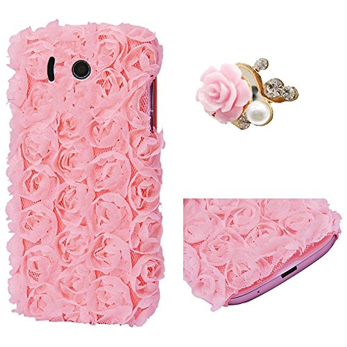 Vandot 2 In1 Case Cover Shell Set Di Accessori Rosa Rosa Custodia Protettiva Per Smart Phone Huawei Ascend Y300 Smartphone (10,2 cm (4,0 Zoll)3D Bling Strass Pelle Del Skin Sacchetto Bag Della Copertura Del Fiore Di Scintillio Del Diamante Di Caso Di Vibrazione Della Camelia Del Diamante Diamond 3D Di Cassa Di Cristallo Del Telefono Mobile Della Copertura Della Cassa + Rosa 3,5 Millimetri Anti-Polvere Dust Plug Strass Flower Fiore Spine Della Polvere Di Perle - Rosa Luce Fiore Rosa Mobile Phone Ciondolo Per Cellulare Romantico Romantic Romanzesco Rose