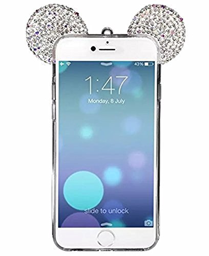 Vandot iPhone 5S/SE/5 Cover con Brillantini Glitters,Trasparente Crystal Clear Cristallo-Cover Morbida in Silicone 3D Lovely Custodia Brillante Lucciante Luminosa Con Coniglio abbit Bunny Ear pratica DigiCentury-Cover posteriore rigida antiurto con Cordoncino, Bumper Shockproof Back Protector con Orecchio Mouse Strass Glitter Bling Sparkles Rigida Colorate - Bianco