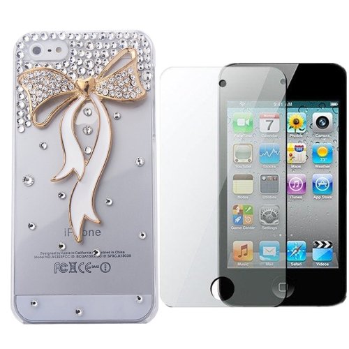 Vandot 2in1 3D Lusso Accessori Set Custodia Case Cover Shell Skin Per Caso Astuto Telefono Apple iPhone 5 5S Copertura Rhinestone Bling Shinning Star Crystal Strass Caso Dell'unitÀ Elaborazione Smartphone Scintillio Twinkle Diamante Protection Protector Protettiva Cristallo Diamand Cassa Mobile Signora Fashion Glittering Lovely Nice Modern Girl Woman Style transparent trasparente Papillon Bow Tie Farfalla 3D Butterfly+1x Protezione Dello Schermo Screen Protector LCD Film Donna Top Lady- Bianca Giallo Oro