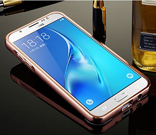 Vandot Lusso Ultra Slim Thin Custodia Specchio in Alluminio per Samsung Galaxy J7 (2016 Version) Specchio Effetto Mirror Protettivo Metallo Bumper Cover Rigida Alluminio Metallo Specchio Back Cover Mirror Case Skin Shell per Samsung Galaxy J7 (2016 Version) - Rosa Gold