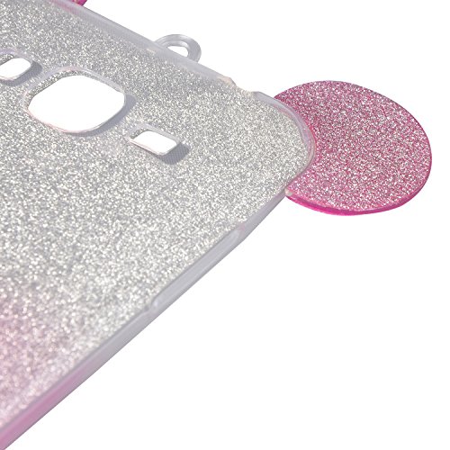 Vandot Samsung Galaxy J3 2016 Custodia Cover, Galaxy J3 2016 Silicone Caso Molle di TPU Cristallo Trasparente Sottile Anti Scivolo Case Posteriore Della Copertura Protezione per Galaxy J3 2016 Ultra Sottile Glitter Bling Diamond Strass Brillantini Mouse Ears Lanyard Soft Morbido Gel Protettivo Custodia Copertura Shell per Gradiente Color Rosa 3D Lovely Coniglio Custodia in Silicone Foldable Rabbit Bunny Ear Case Crystal Clear Bumper Shockproof Back Protector - Rosa