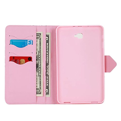 Vandot 3 in1 Sottile Classico Protector Tavoletta Custodia in Pelle per Samsung Galaxy Tab A 10.1 pollici SM-T580 T585 2016, Stampato Dipinto Pittura Pattern Chiusura Magnetica Carte Slot Credito Stile del Libro Bookstyle Supporto Pieghevole Portafoglio flip Tablet Cover Shell Skin + Pompom Furry Ball Strap +Bling Diamante Anti-Dust Spina - Farfalla