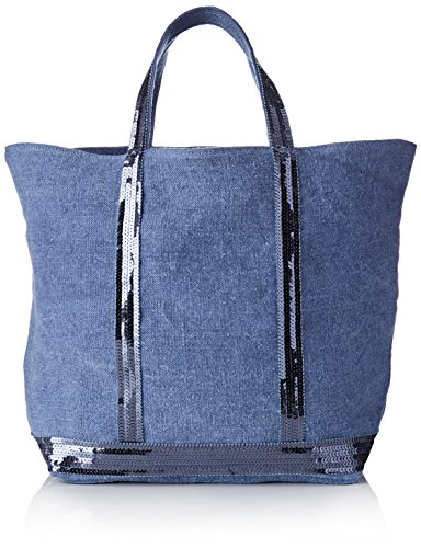 Vanessa Bruno Cabas Medium Lin Et Paillettes - Borse Tote Donna, Blu (Bleu De Chine), 16x30x42 cm (W x H L)