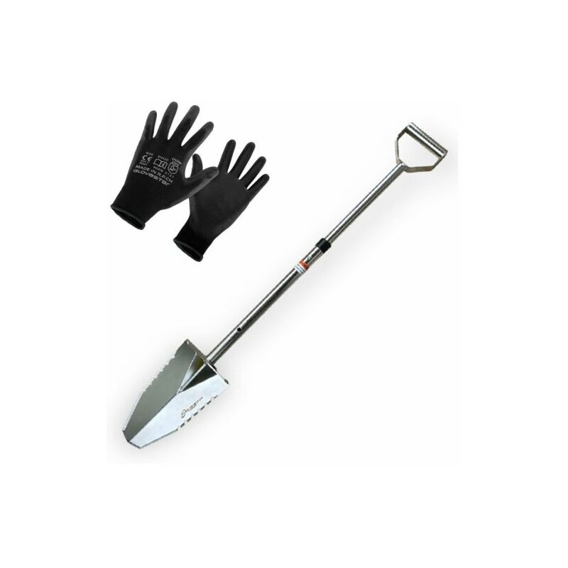 Over Detector pala sparta Smontabile e regolabile + Guanti Robustissima pala da scavo di alta qualità della Over-Detector smontabile e regolabile, completamente in acciaio 304 da 3 mm. Lama a sega affilata in entrambi i lati per uno scavo facile e confortevole. Ottima per il recupero degli oggetti interrati nei terreni compatti o per il taglio di eventuali piccole radici con la particolare. Acciaio inossidabile 304 da 3 mm Lunghezza totale 930 mm. Lunghezza minima 710 mm. Lunghezza smontata 600 mm. Lunghezza lama: 240 mm. Larghezza lama: 135 mm. Diametro tubo 24 mm. Spessore lamiera della pala: 3 mm. Peso: 1,550 kg. circa Cosa comprende l'offerta? nr.01 Over Detector pala sparta Smontabile e regolabile + Guanti