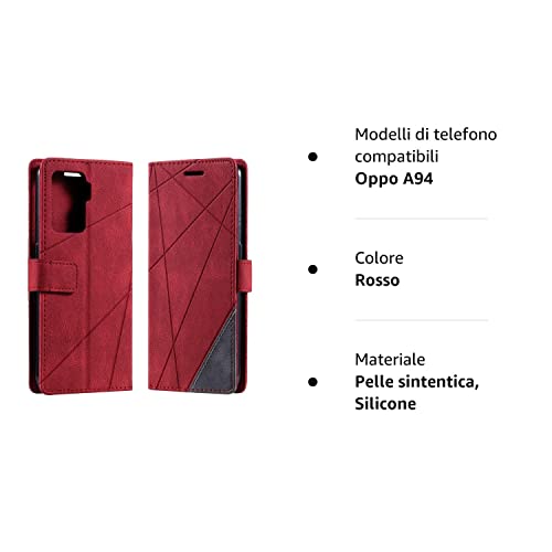 Vankii Cover per Oppo A94 4G/F19 Pro/F19 PRO Plus/A94 5G/A95 5G, Flip Caso Libro Portafoglio Custodia in Pelle PU Magnetica,Custodia Pelle TPU Silicone Antiurto,Funzione Supporto Slot Schede (Rosso)
