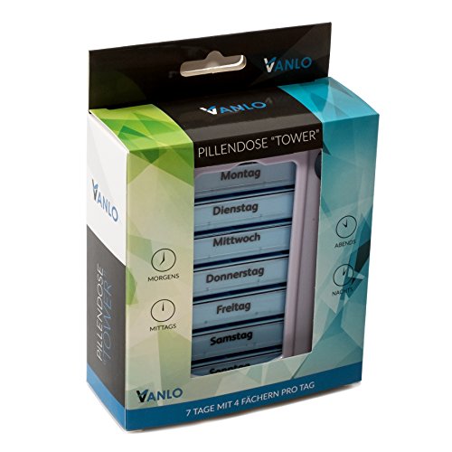 Vanlo - portapillole"Tower", per 7 giorni con 4 scomparti al giorno