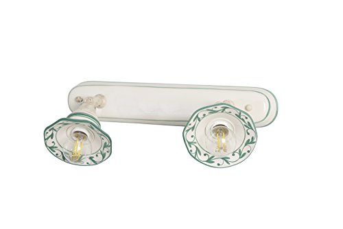 VANNI LAMPADARI - Applique da Parete Interno Edera - Lampada da Parete Orientabile 2 Luci- in Ceramica Decorata a Mano - Applique Camera da Letto - Bagno - Cucina - Soggiorno, Verde