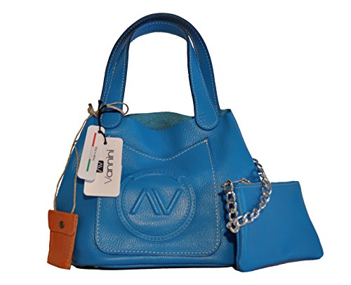 Vannini Borsa donna vera pelle modello secchiello piccolo - turchese