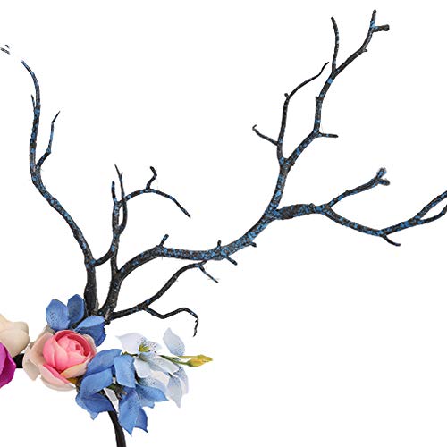 Vanornia Cerchietto per Capelli con Fiore e Rami di Albero Fasce da Donna Rgazza Corna di Cervo Ghirlanda Floreale per Natale Halloween Festa Cosplay (A-Verde scuro, Taglia unica)