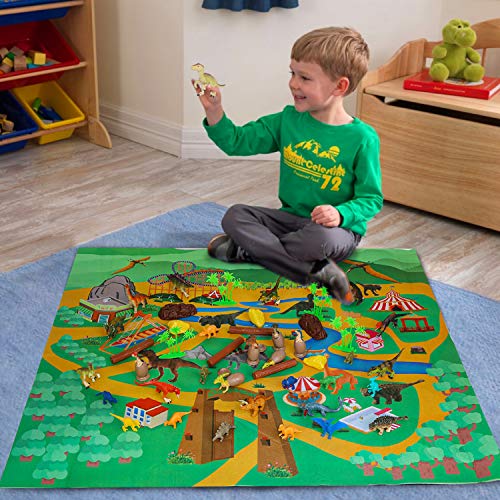 Vanplay Dinosauri Giocattolo con Tappeto Gioco e Scatola di Immagazzinaggio per Bambini, Decorazioni per Torte 53Pcs