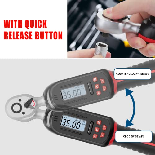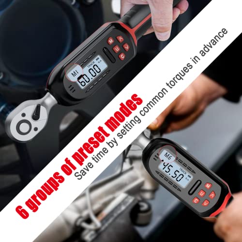 Modalità di misurazione: la chiave dinamometrica da 3/8 pollici dispone di quattro modalità di misurazione. Hai solo bisogno di utilizzare i pulsanti e puoi vedere chiaramente la conversione del valore tra le unità di misura attraverso il display, il che è più preciso e più comodo di una chiave meccanica.