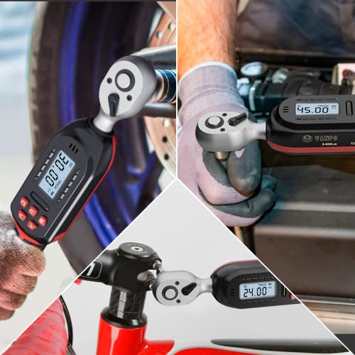 VANPO Chiave Dinamometrica Digitale da 3/8 inch, 3-60Nm Bici e Moto Chiave Dinamometrica Piccola, Precisione di Errore ±2% con Memoria Preimpostata Buzzer E Indicatore LED