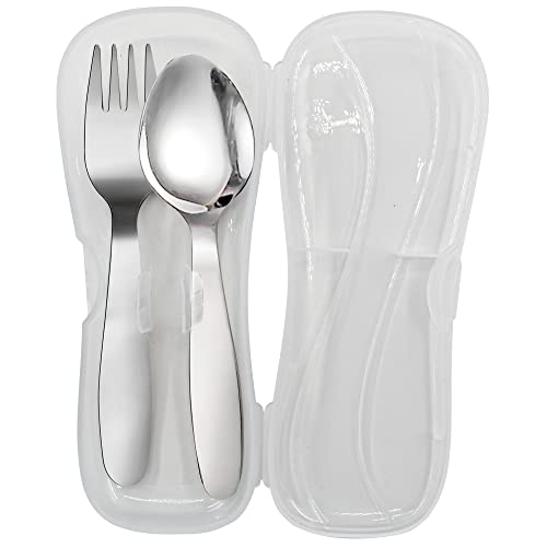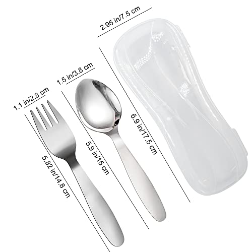 VANRA Set di 2 cucchiai per forchetta per bambini con custodia da viaggio per portapranzo, in acciaio inossidabile 18/8, set di posate per bambini Set di utensili per la scuola (cucchiaio forchetta)