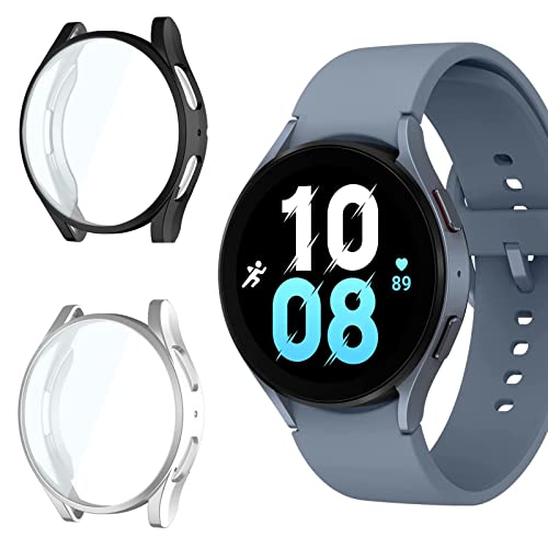 Vanrain 2 Pezzi Cover Protettiva Compatibile con Samsung Galaxy Watch 5 40mm, Flessibile TPU Pellicola Custodia Protezione Completa Cover Alta Definizione Anti-Graffo Case, Nero & Argento