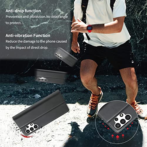 Vansdon Custodia per Samsung Galaxy A13 4G, Cover Samsung Galaxy A13 4G, [Slot per Schede] [Antiurto] [Kickstand] Custodia Pelle Sintetica TPU, Flip Custodia in Pelle Magnetica, Nero