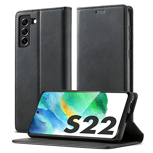 Vansdon Custodia per Samsung Galaxy S22 5G, Cover Samsung Galaxy S22 5G, [Slot per Schede] [Antiurto] [Kickstand] Custodia Pelle Sintetica TPU, Flip Custodia in Pelle Samsung S22 Magnetica, Nero