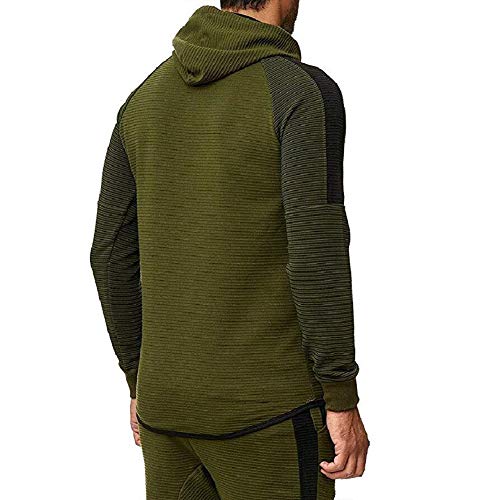 Vanvene, Tuta casual da uomo, con pantaloni da jogging e felpa con cappuccio con cerniera intera, taglia M-5XL, Verde, XXXXXL