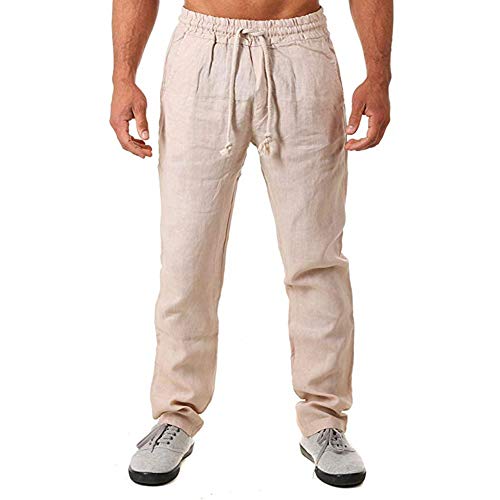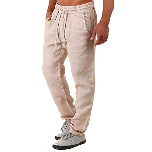 Vanvene - Pantaloni da uomo con orlo aperto, in lino, stile casual, con coulisse elastica, pantaloni da yoga, spiaggia cachi M