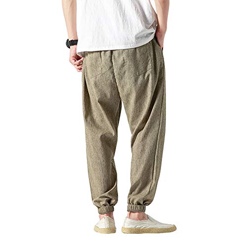 Vanvene - Pantaloni casual da uomo in lino e cotone, leggeri e larghi, da spiaggia, yoga, gamba ampia Giallo 5XL