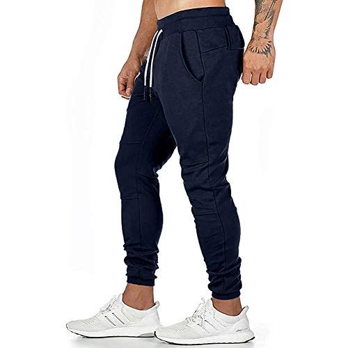 VANVENE Pantaloni sportivi da uomo casual elasticizzati in vita slim fit pantaloni palestra jogging pantaloni della tuta, Marina Militare, XL