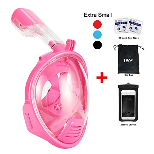 Vaporcombo, maschera integrale per snorkeling, maschera da snorkeling con visione completa a 180°, per adulti e bambini con supporto per GoPro, ChildPink
