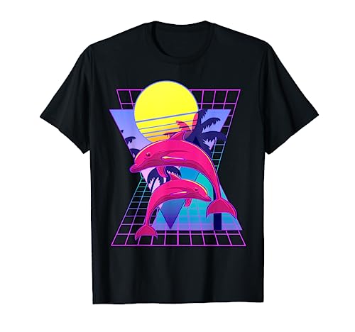 Vaporwave Dolphins Retro 80s Estetica Maglietta