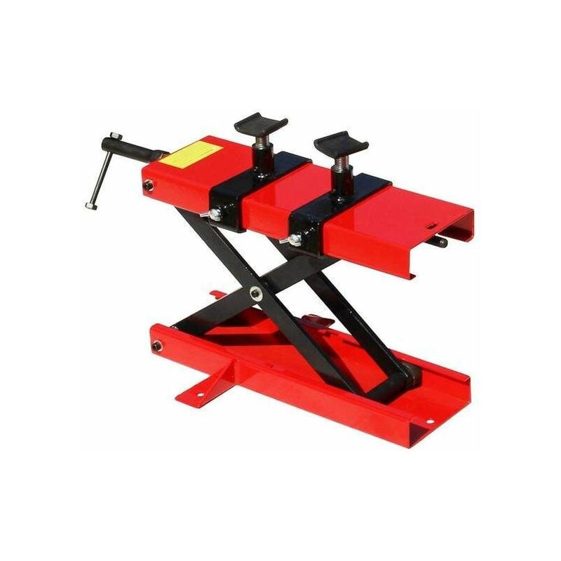 Ponte elevatore, piattaforma elevatrice per piccole moto e scooter. Carico massimo fino a 500 kg Un elevatore di montaggio pratico indispensabile per il tuo garage. La piattaforma elevatrice ti garantisce una posizione stabile. Può essere collegata al telaio, al motore o al forcellone. Il sollevamento e abbassamento è fatto da una maniglia collegata ad una vite senza fine. Ciò permette di evitare un abbassamento involontario. Dati tecnici: Portata massima: 500 kg Altezza minima: 17 cm Altezza massima: 49 cm Dimensioni dell'imballaggio: 54 x 34 x 10 cm Dimensioni della superficie di contatto: 61 x 31 x 16 cm Colore: rosso e nero Peso: 14,5 kg
