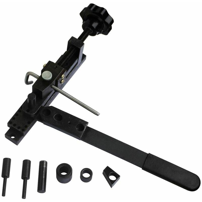 Questa piegatrice universale vi permetterà di eseguire varie operazioni di piegatura e piegatura su barre in acciaio dolce a sezione tonda e quadrata. Contenuto 1 impugnatura pieghevole comoda maniglia: lunghezza 305 mm. 1 base di curvatura. 4 perni cilindrici di diametro: 5 - 6 - 13 - 25,4 mm. 2 perni di bloccaggio per la riproduzione. Dati tecnici Capacità di piegatura: Rotondo: 7mm - Piatto: 25x3mm Peso: 3Kg