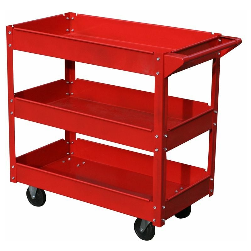 Carrello porta attrezzi con ruote, 3 livelli, 100 Kg SC135 Varan Motors Questa gamma di carrello porta attrezzi risponde perfettamente alla necessità del meccanico, del carrozziere, ma anche dei privati di tenere i suoi attrezzi in ordine. Può anche essere utilizzato nel settore medicale, aerospaziale... Il carico massimo di questo prodotto è 100 kg. Potrai sistemarci tutti i tuoi strumenti e pezzi per averli sempre a portata di mano. Contenuto Il carrello Due ruote girevoli Due ruote fisse Una maniglia Dati tecnici: Colore: rosso Resistenza massima: 100 kg Materiale: metallo Livelli: 3 Fissaggio: sistema di fissaggio con viti Altezza ruota: 10 cm Dimensioni: 840 x 410 x 780 mm (L x l x H) Dimensioni dell'imballaggio: 780 x 440 x 100 mm (L x l x H) Peso: 12 kg