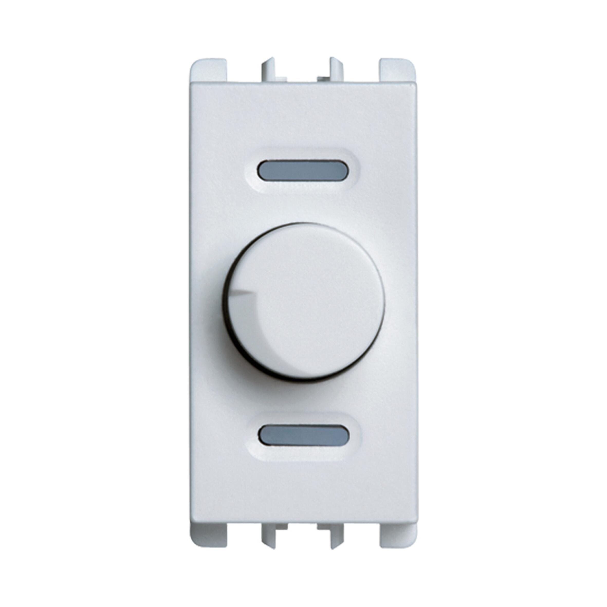 Per carichi resistivi da 100 a 500W, 1 modulo. Con deviatore push-push e potenziometro rotativo incorporati. Individuazione al buio