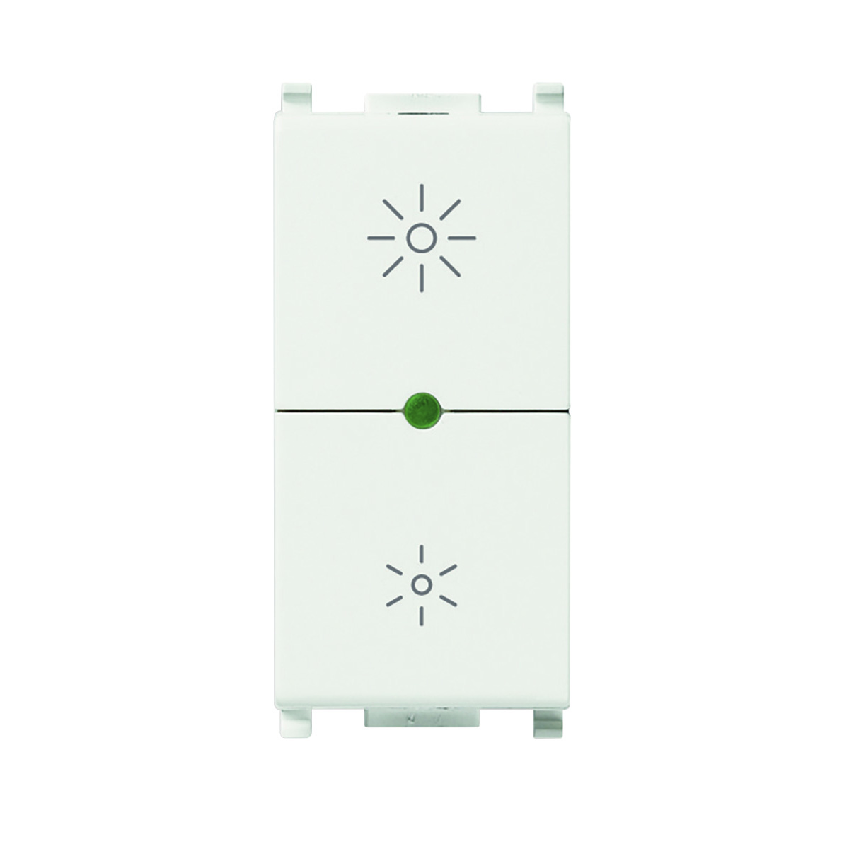 Universale, 2 moduli. Adatto per per lampade ad incandescenza 40-400 w, trasformatori elettronici 40-300 va, lampade cfl 10-200 w, lampade led 3-200 w,. Adatto per alimentatori elettronici led a taglio di fase, comando on/off e regolazione con pulsanti incorporati o da più punti con pulsanti no. Con deviatore push-push e potenziometro rotativo incorporati. Individuazione al buio