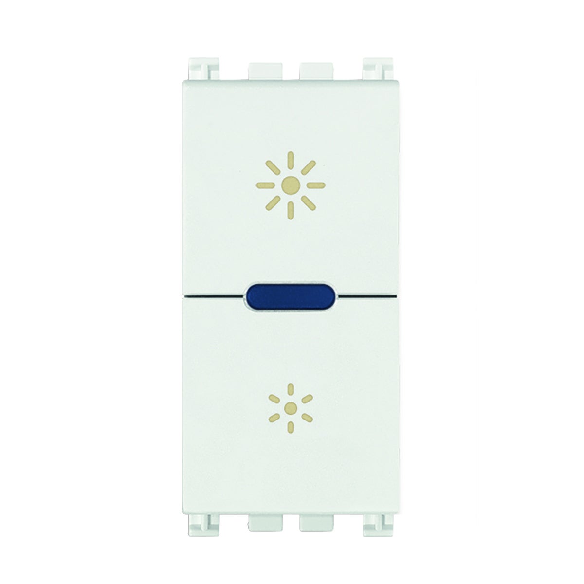 Universale, 2 moduli. Adatto per per lampade ad incandescenza 40-400 w, trasformatori elettronici 40-300 va, lampade cfl 10-200 w, lampade led 3-200 w,. Adatto per impianti via satellite monoutente e centralizzati con passaggio di corrente e di segnale per la selezione dei canali. Con deviatore push-push e potenziometro rotativo incorporati. Individuazione al buio