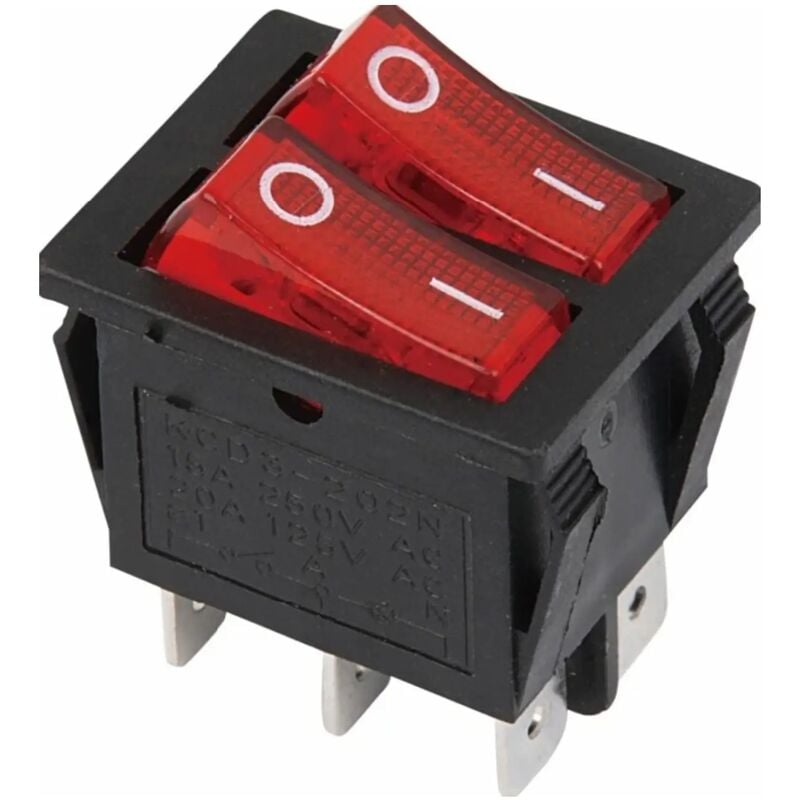 Interruttore bilanciere doppio bipolare 0-1 luminoso rosso tensione massima 250 volt 15 A 31.5x28.2 mm 28x22 mm