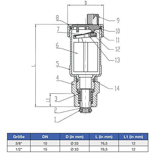 VARIOSAN, sfiato automatico a rilascio rapido in ottone lucido, forma sottile, con valvola di montaggio