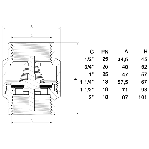 Materiale: corpo in ottone, piastra e molla in acciaio inossidabile, guarnizione in NBR