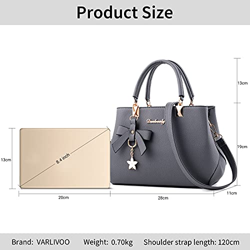 VARLIVOO Elegante Donna Borsa Delle Donne Borse a Mano Borse a Spalla Con Tracolla Regolabile Borsa Tote Impermeabile Ecopelle Borsa Grigio Scuro