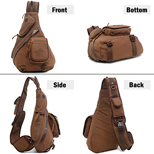 VARLIVOO Zaino Monospalla da Uomo Borse a Spalla Sling Bag Crossbody Bag Escursionismo Viaggio Pendolarismo Campeggio Ciclismo Alpinismo Scuola Tela Sling Backpack Marrone A