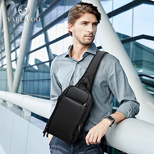 VARLIVOO Moda Zaino Monospalla da Uomo Borse a Spalla Sling Bag con USB Port Crossbody Bag Multi Tasche Sling Backpack Affare Viaggio Escursionismo Impermeabile Poliestere Nero