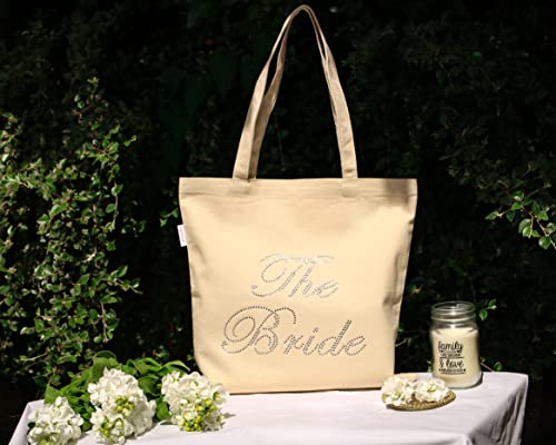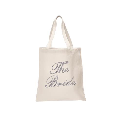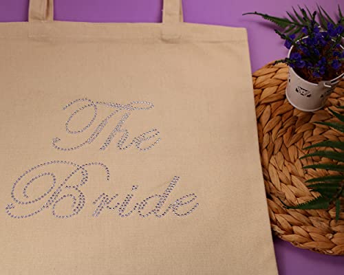 Varsany, borsa in cotone con decorazione di strass, per sposa, addio al nubilato, matrimonio, colore: Avorio Borse shopper The Bride