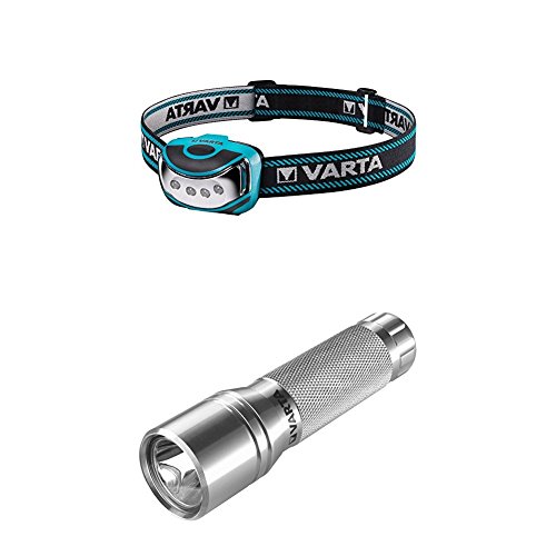 Varta 16630101421 Torcia da Testa a LED X4, 3 Baterie AAA + 17634101421 Torcia Premium LED Light, 3 AAA