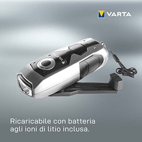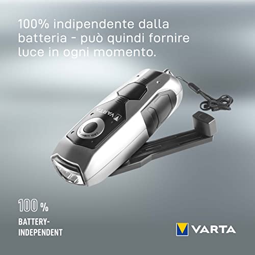 Varta 17680101401 Torcia LED a mano DYNAMO portatile LED con carica a dinamo, 28 Lumen, 100% Resistente agli urti e idrorepellente, batteria ricaricabile