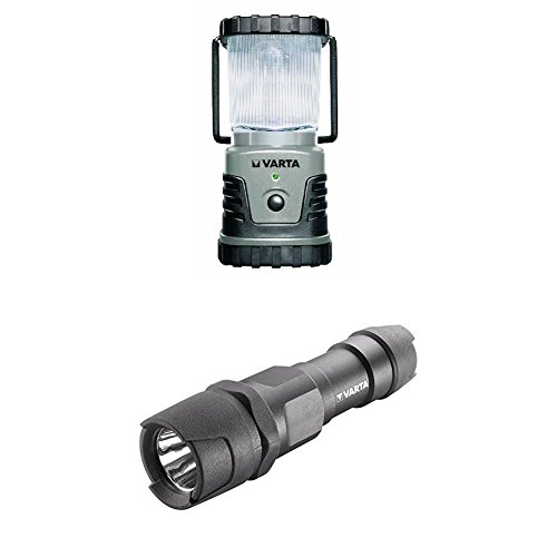 Varta 18663101111 Lampada LED da Campeggio, 4W + 18700 Indestructible Torcia Elettrica da Mano, LED, 1 Watt e 3 Batterie AAA