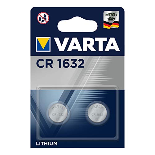VARTA CR 1632, 6632101402, Batteria Litio a Bottone, Piatta, Specialistica, 3 Volts, Diametro 16mm, Altezza 3,2mm, confezione 2 pile
