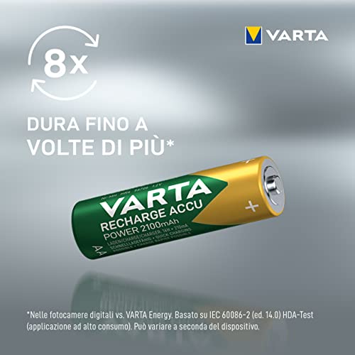Varta Batteria Ricaricabile AA Stilo, 2100 mAh, Confezione da 2 Pile, Pre-caricate, Pronte all'Uso