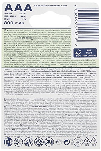 Varta Ready2Use Batteria AAA, 800mAh, confezione da 4