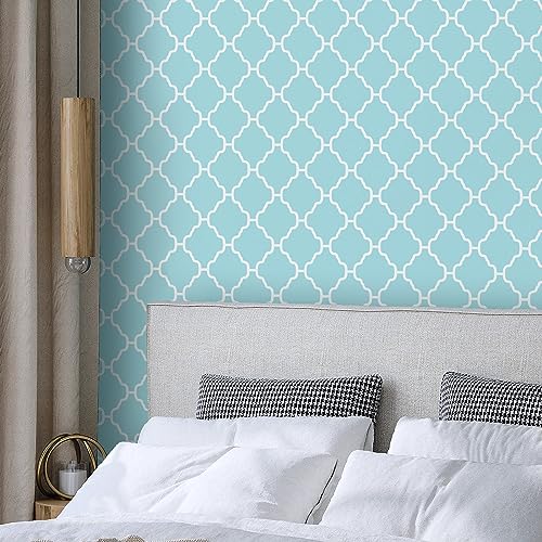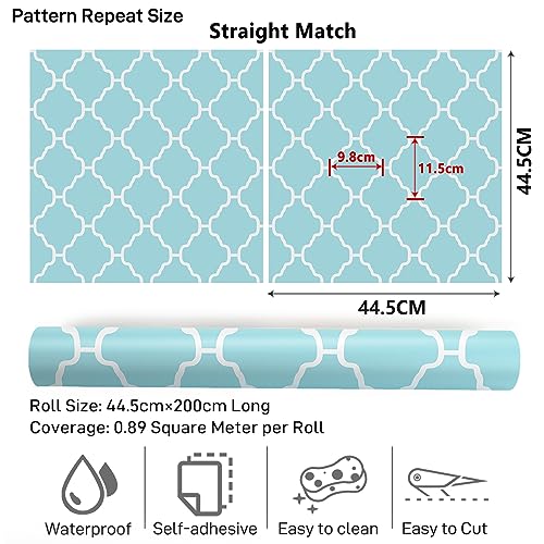 Carta da Parati Adesiva Dimensioni e design: 44,5 cm di larghezza per 200 cm di lunghezza, una carta adesiva rotolo può coprire 0,89 metri quadrati. Geometrico blu chiaro con strisce bianche, stile marocchino misto a minimalismo, elegante e unico, vi dà l'ispirazione per lo stile della vostra casa
